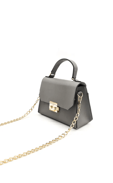 Cosmo Carry bag in Cloudy Grey, a sophisticated and compact handbag designed to instantly elevate your style. Perfect for the discerning woman in Chishtian, Punjab, Pakistan, and beyond, this bag harmonizes modern elegance with practical versatility.