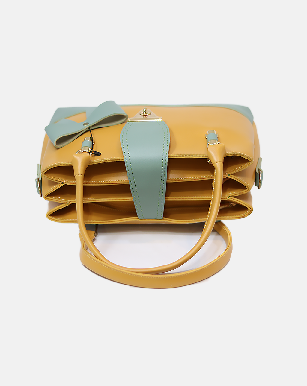 The Modern Two-Tone Handbag is one of the most stylish handbags / Satchels with a standout comparison of mustard yellow and Mint Green to give any wardrobe a burst of color.